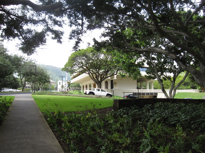 畑中幸子先生の調査助手として最初にハワイを訪れたのが、1974年6月末で、1週間ほどおりました。 その後、1978年1月〜1980年4月まで、East-West Centerの奨学金をいただいて、 半分サモアで、半分ここで過ごしました。懐かしい土地です。また今回戻ってきましたが、 あまり、変わったという印象は受けておりません。 East-West Centerは連邦政府のもつ研究・教育機関で、ハワイ大学マノア校内に設置されていますが、 予算は連邦政府から出ております。ハワイ大学は州立です。 今回ハワイ大学人類学部の客員研究員としてまいりましたが 結局古巣にもお世話になることになり、オフィスをいただきました。 残念ながら、そのオフィスの写真は、1階ギャラリーを除いてはありません。次回にまた 2011.4.10 | |
