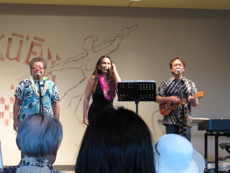 Hawaiian Studies主催のハワイ音楽の夕べ グラミー賞受賞のTia CarrereとDaniel Ho 左は、夕べの企画をした、Amy Stillman教授 |
