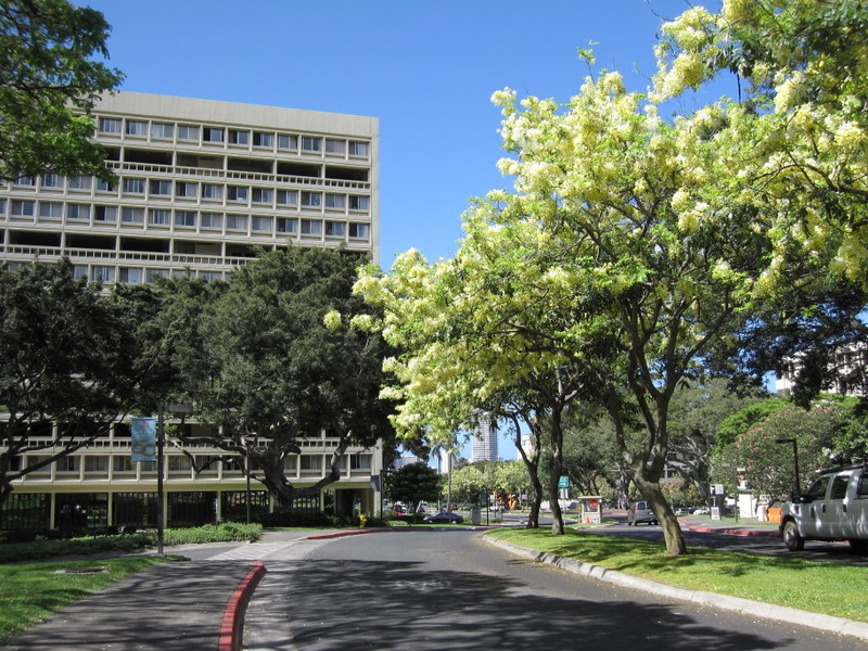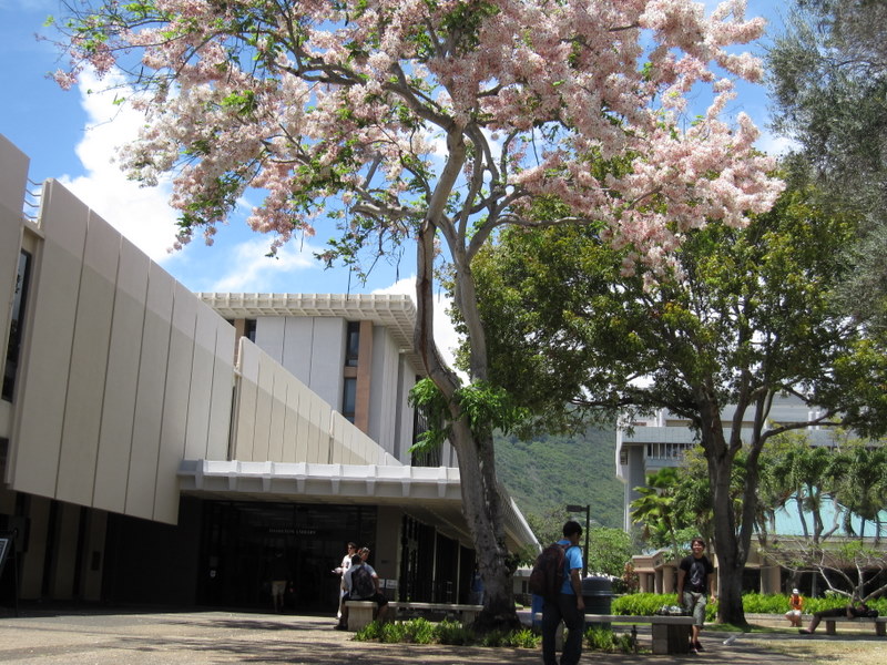 ハワイ大学ハミルトン図書館前 ピンク・アンド・ホワイト・シャワー・ツリー |