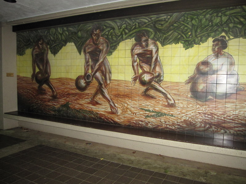 サモア人アーティスト、マタウムの作品 タイル張りミュラル、ハワイ大学スポーツ施設の一部 |